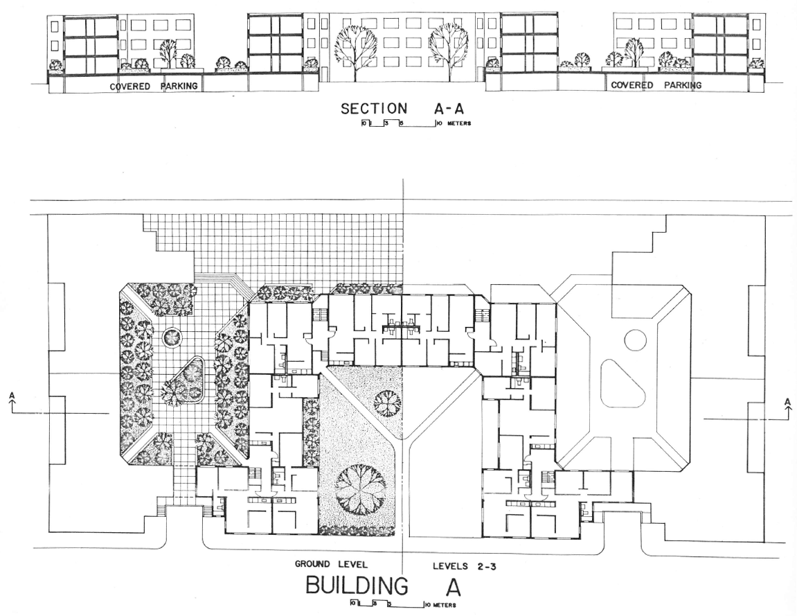 I never buy into the Cornell Corbu-inflected modernist design ethos, and produce this conventional apartment plan for a 4th-year design studio, May 1974 (I still recall Prof. Werner Seligmann's diatribe about how horizontal strip windows have been proven by science to be superior to double-hungs).
