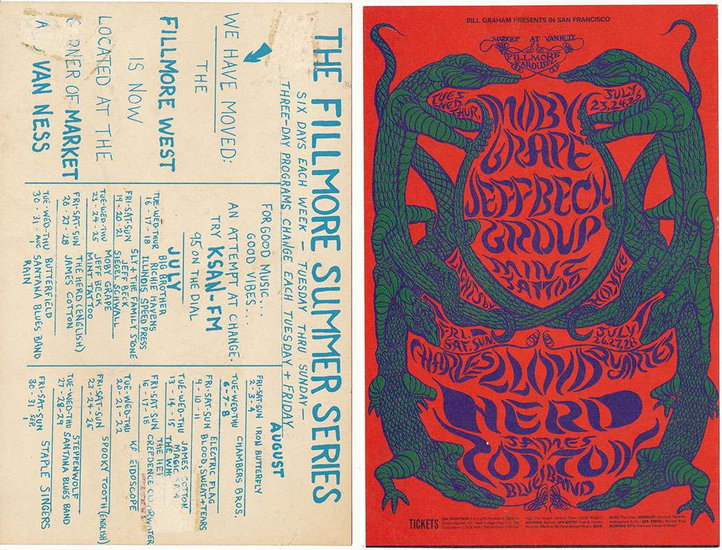Mom drives us across country in her new Buick Special; we stay in San Francisco and see Janis Joplin, Jeff Beck, Sly Stone, and others at the Fillmore West, where I pick up this classic poster, July 1968.