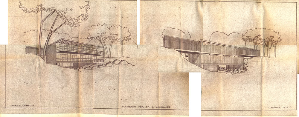 I get a summer job with New Rochelle, NY Architect Kaneji Domoto, and make this drawing in Aug. 1972. Domoto studied with Frank Lloyd Wright, and designed the house my father built (and that we lived in beginning in 1964).