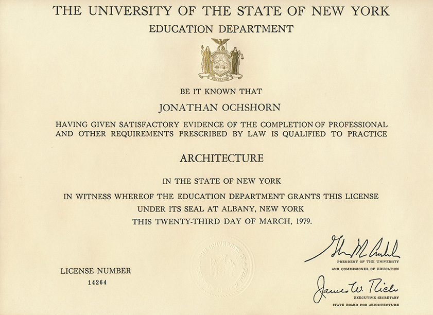 I pass my licensing examination and get a free architectural stamp from Charrette, the architecture/art supply store, March 1979.