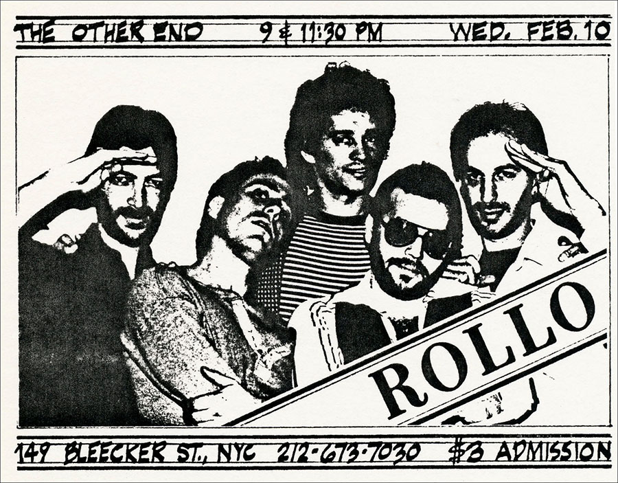 I join a band which we eventually name Rollo; I design the cover for our first "45" record, recorded in the legendary A-1 Studios (which had been established by Herb Abramson, co-founder of Atlantic Records, in the 1960s) circa 1980