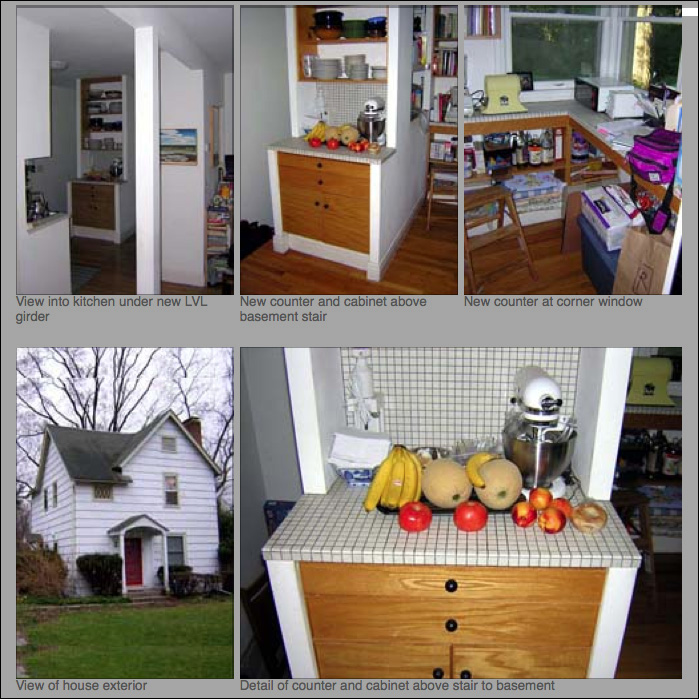 One year after moving in, we demolish everything in the first floor, install insulation, new wiring, gypsum board, a new structural girder, and a new kitchen as shown here in 1991.