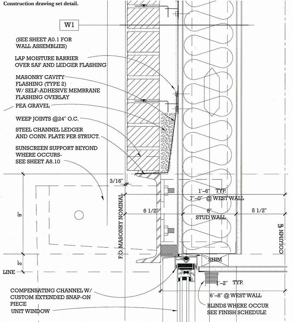 Refer to Chapters 20 and 21 of the text (Details 20.5 and 21.11 may be useful), the International Masonry Institute Detailing Series, Architectural Graphic Standards and other references linked from the course readings page, and the Milstein detail and video linked from the lecture notes.