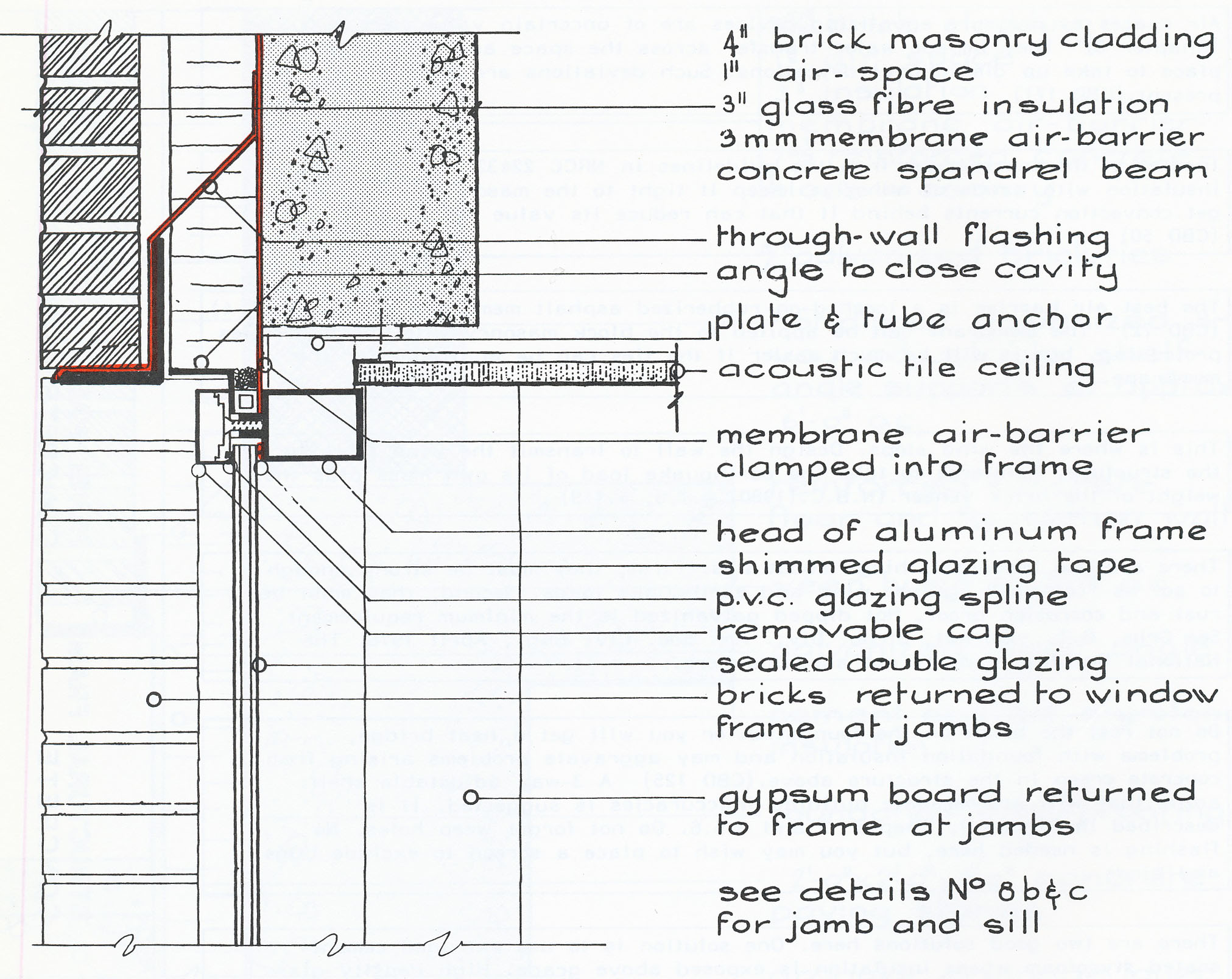 The overall form and features of the building should remain pretty much as they are shown in the as-built drawing above (position of structure relative to facade, etc.), but you will need to modify existing details, in addition to the required modification of the cladding and glazing system. Label all elements in the drawing ("notations"), and provide dimensions and datum heights as in the original detail.