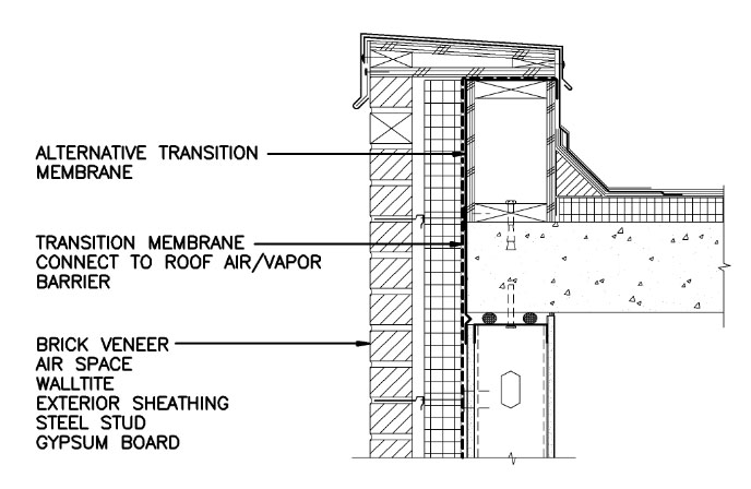 Show continuity of roof-wall insulation and air/water/vapor barriers.