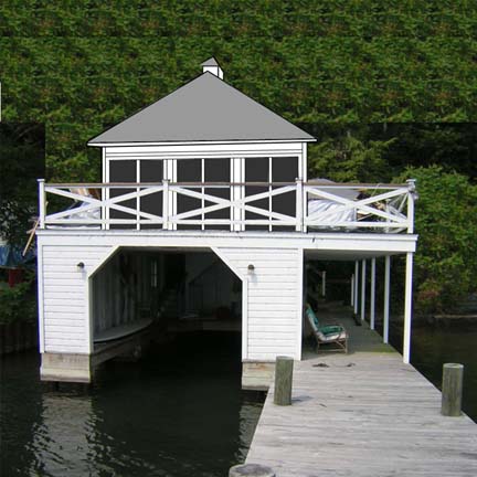Consulting and construction details for boathouse repair, based on previous design but incorporating improvements in the areas of environmental control and structural stability.
